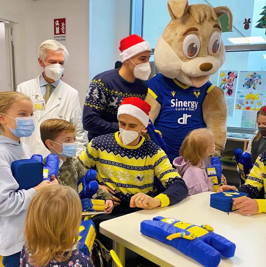 Come accaduto ieri, presso l'Ospedale di Borgo Trento, in cui Kevin Lasagna, Davide Faraoni e Alessandro Cortinovis, tre calciatori dell'Hellas Verona, accompagnati dalla simpatica mascotte, Mastino, abbiano consegnato doni assai graditi ai piccoli, ma agguerriti, pazienti del Reparto di Oncoematologia Pediatrica.